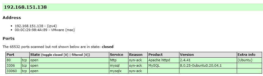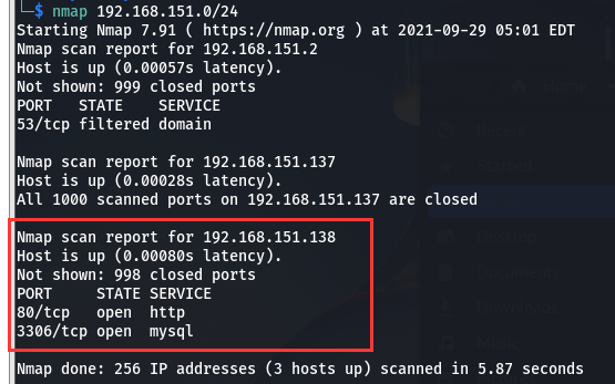 - 使用Nmaep扫描该网段,发现该靶机IP为
