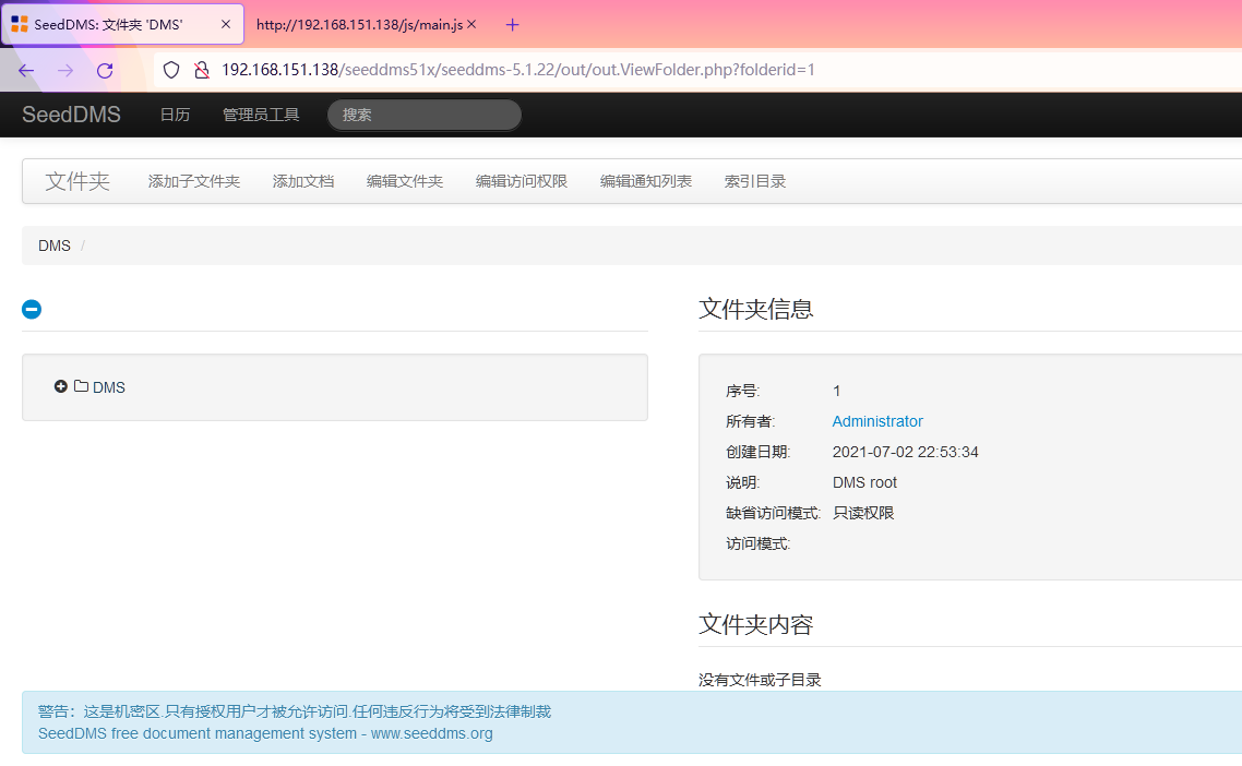 F12看一下源码,发现main.js中存在一些敏感信息,发现了使用的CMS:seeddms