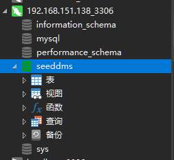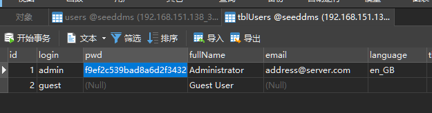 seeddms文件夹下有个conf文件夹,里面有配置文件,瞅了一眼,在./seeddms51x/conf/settings.xml中包含数据库默认密码,而且这个系统开放3306端口,于是打算尝试能不能打开这个网站的配置文件,经过测试成功,数据库是MySQL,用户名、密码是默认密码seeddms/seeddms