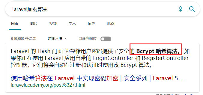 LaravelPHP框架,而Laravel的加密算法使用的是Bcrypt 哈希算法,与上一条提示的密码算法一致