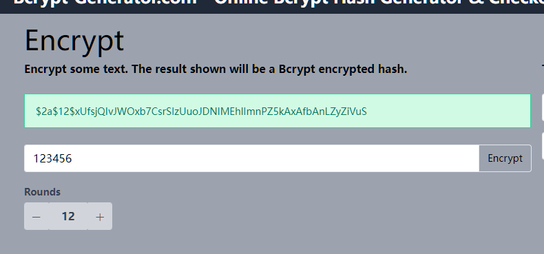 - 在https://bcrypt-generator.com中输入想要加密的内容,生成密文