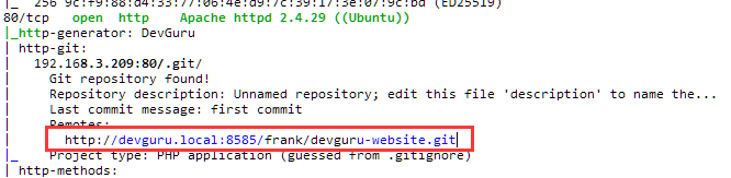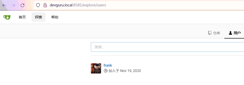 - 同时可以在nmap扫描结果中看到8585端口需要配置域名才可以访问,配置成功后进入网页,是一个Git服务,其中有一个用户