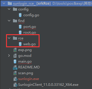 web.go中看到共有三个函数来实现RCE,第一个函数是判断当前端口是否存在漏洞,第二个函数是获取RCE所需的Cookie,第三个函数是执行命令