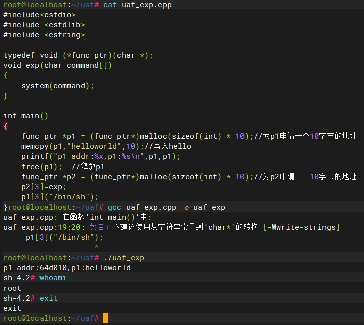 可以看到通过UAF我们成功执行了/bin/sh命令