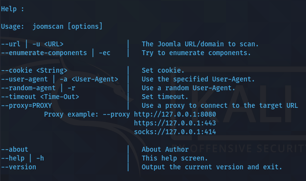 joomscan -u www.example.com --proxy https://127.0.0.1:443- 例子