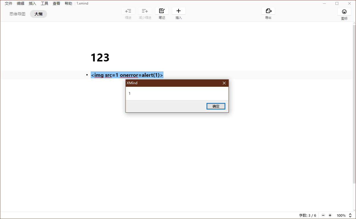 - 打开安装好的Xmind,在大纲中输入XSS语句即可